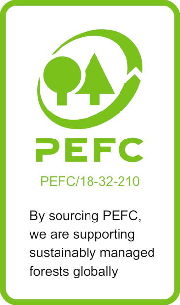 The PEFC Certificate for trading of certified logs, sawn timber, planed timber, strips, and decking 100% PEFC.